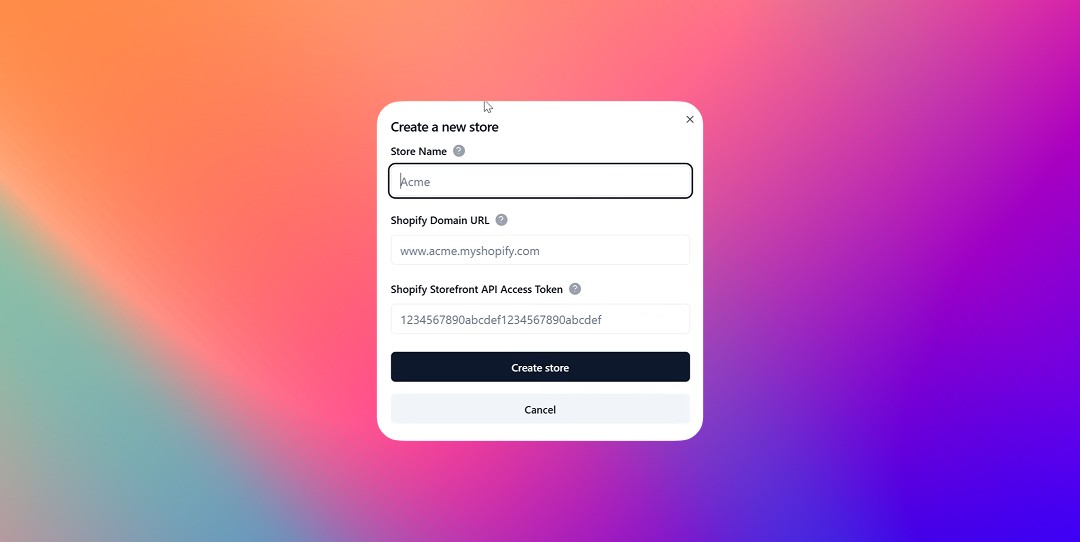 For now, just fill in the store name. We'll grab the other two from Shopify in the next steps.